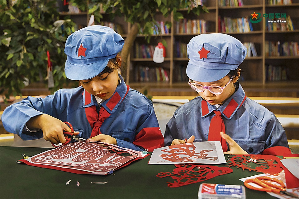 无锡市南湖小学剪纸社团学生正在创作红色主题剪纸作品。邹燕瑛 摄