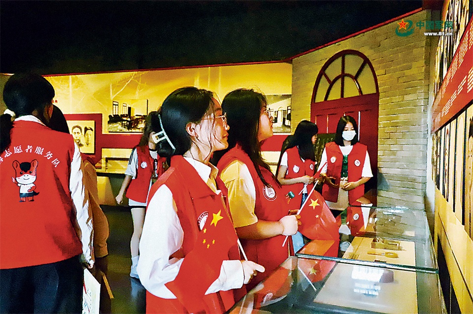 湖北工业大学工程时刻学院的大学生志愿者在武汉改进博物馆参不雅。段菲菲 摄
