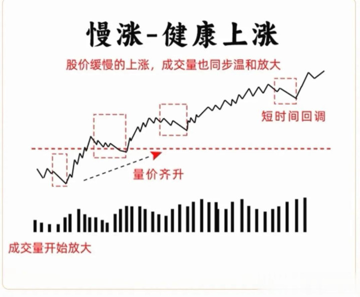 这是最理思的上升口头之一。股价不冷不热,沿着一定的斜率稳步上行,同期成交量也呈现和缓放大的态势。总共进程呈现出“量价皆升”的健康形貌。其间也可能出现短时辰的回调,但回调幅度浅且缩量,很快又会规复上升趋势。这种口头标明多头力量占据主导且潜力糜费,商场持仓心态踏实,后市时常仍有空间。
