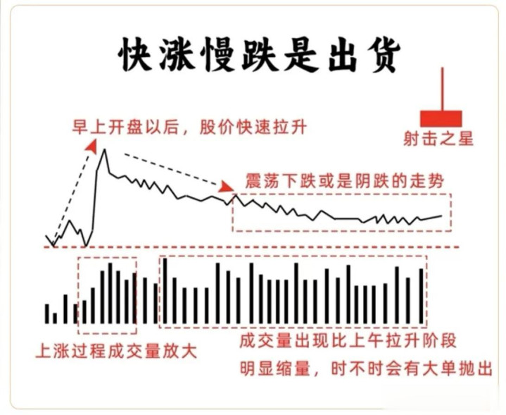 这种口头平素发达为早盘开盘后,股价被快速拉高,时常随同成交量的放大,以致可能变成带有长上影线的“射击之星”K线。然则旷世难逢,随后股价便堕入颠簸下降或阴跌的形貌。要津在于,下降进程中的成交量,比拟上昼拉升阶段出现了显然的缩量,而且盘中时时时会有大单抛出。这种量价背离的欢欣,是主力典型拉高派发筹码的特征,意在眩惑跟风盘的同期,我方却在暗暗卖出。