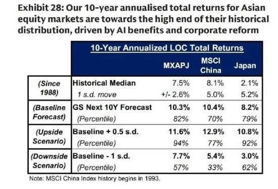 高盛以为,亚洲(不含日本)及新兴阛阓异日十年本币年化总呈文辞别为10.3%和10.9%,位列民众主要板块首位。