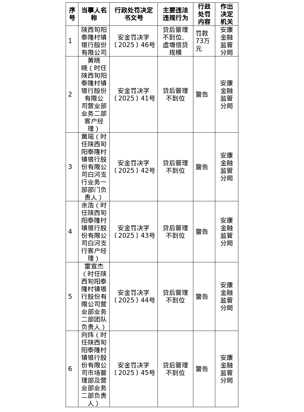 罚单暴露,陕西旬阳泰隆村镇银行股份有限公司的主要非法违纪事实(案由)为:贷后处置不到位、虚增信贷领域。