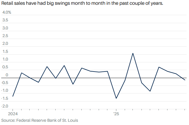 10月份的零卖申诉原定于11月14日发布,但由于政府停摆而推迟发布。联邦机构正在从秋季的政府停摆中收复,东说念主口普查局尚未笃定11月份支拨数据的发布日历。