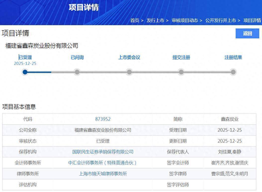 北交所网站裸露,12月25日今日股票配资平台,福建省鑫森炭业股份有限公司(以下简称“鑫森炭业”)北交所IPO已获受理。