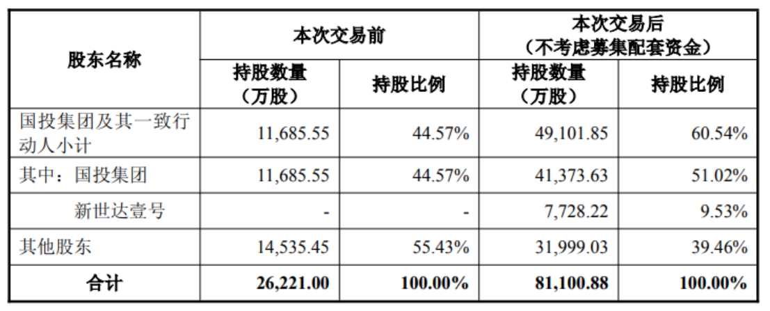 股权结构方面,本次重组后,控股鼓励国投集团偏执一致行径东谈主的抓股比例将从44.57%擢升至60.54%。值得一提的是,交游对方中的新世达壹号、大基金二期展望抓有国投中鲁5%以上的股份,其中新世达壹号将表决权委用给国投集团,系国投集团一致行径东谈主。