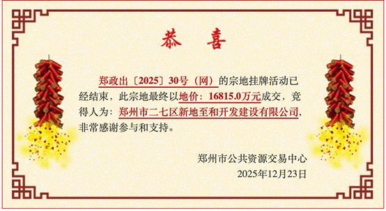 【大河财立方记者朱娟】12月23日,郑州市二七区1宗涉宅用地到手出让,最终由郑州市二七区新地至和设备树立有限公司以16815万元摘得,溢价率11.99%。天眼查信息显现,该公司为亚星置业集团旗下企业。